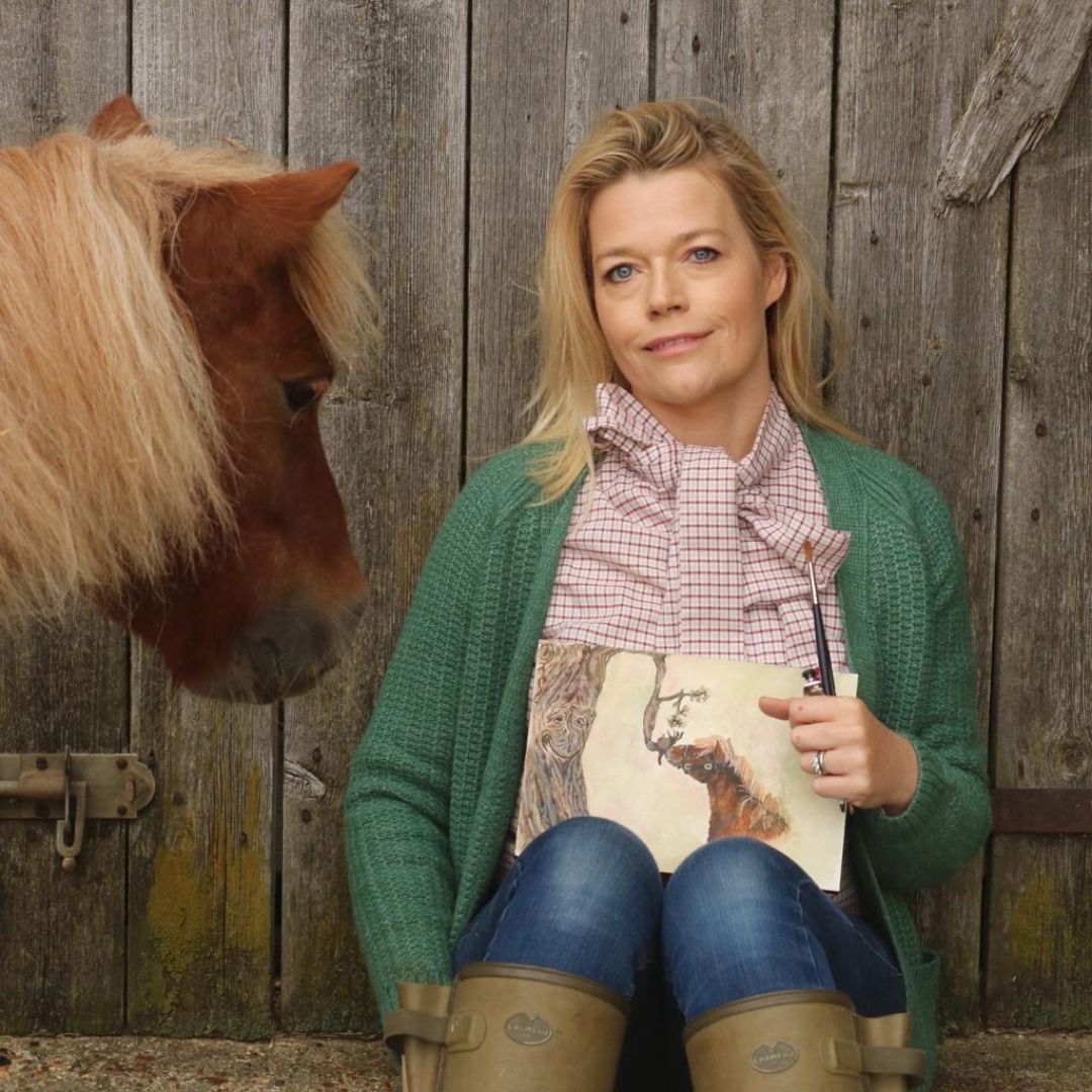 We have two ponies and my old ex-racehorse, Connor, who won 10 races, six with my husband in the saddle. Life is unpredictable with animals and children. Our two terriers, Twig and Bandit, are constant companions—curling up while I paint, chasing mice, or emerging from molehills covered in dirt.