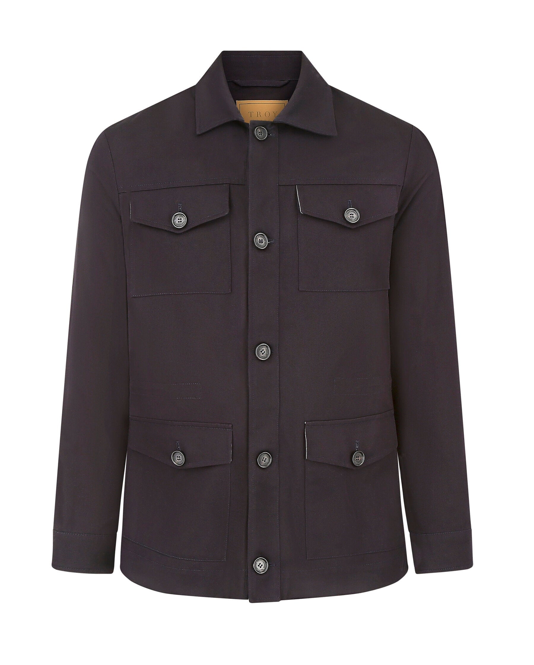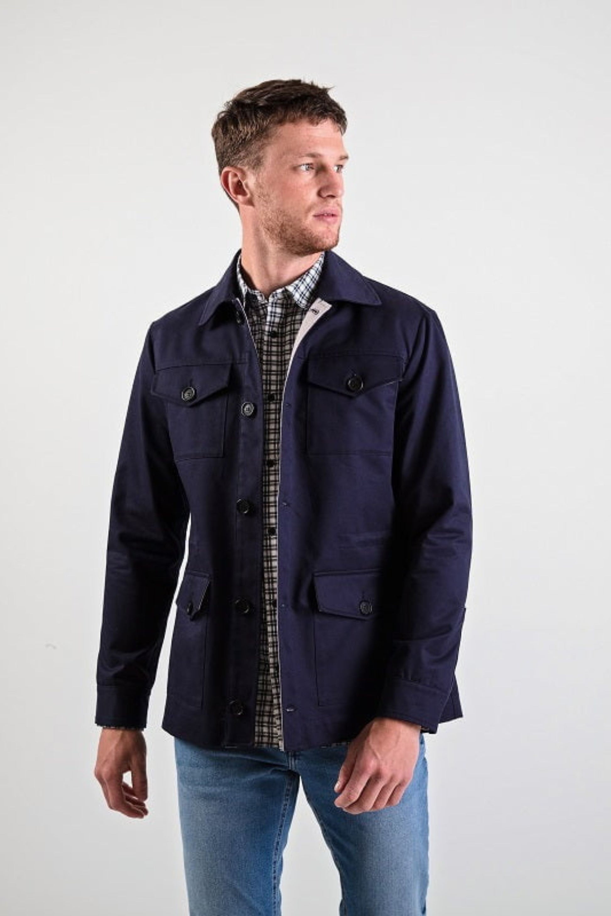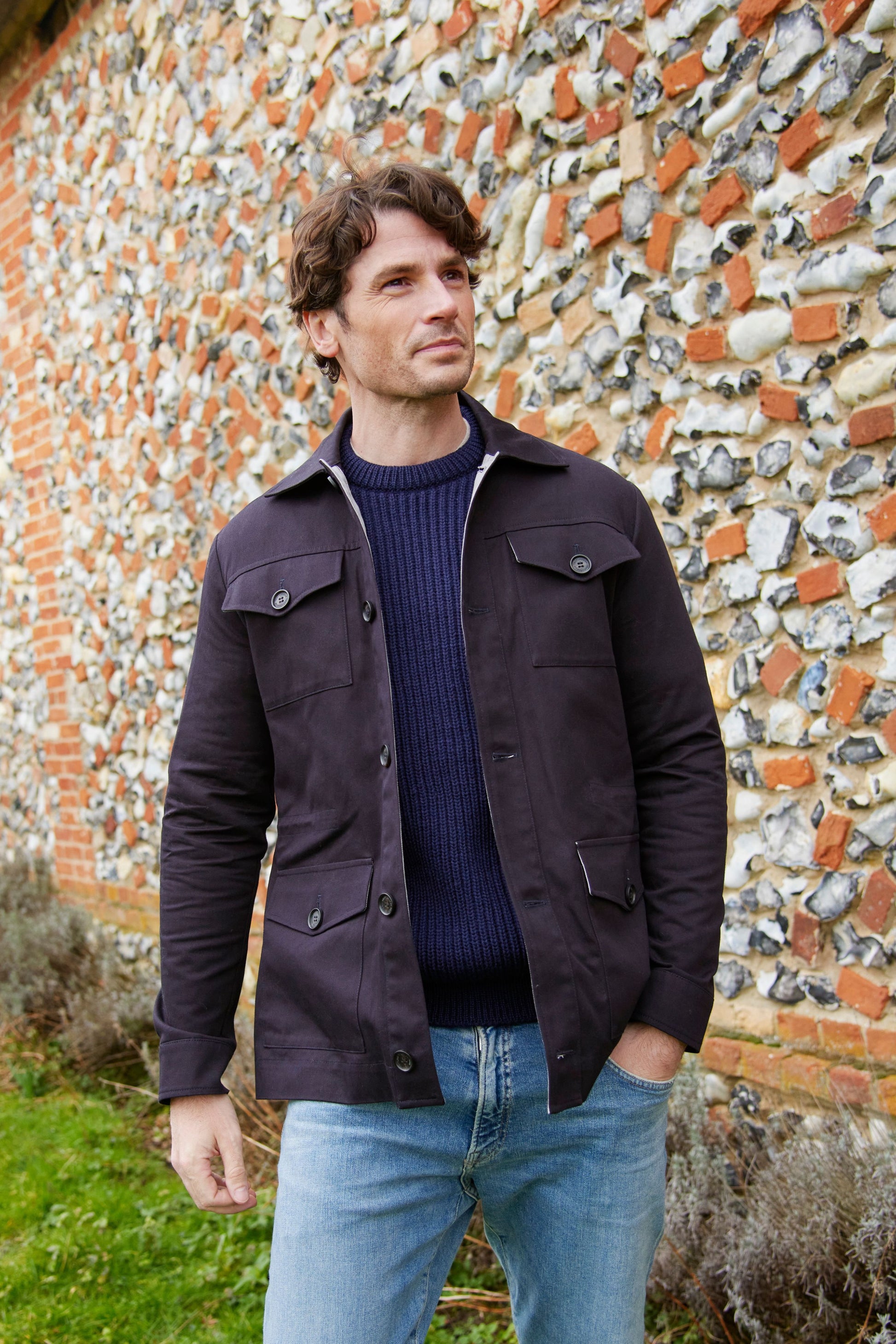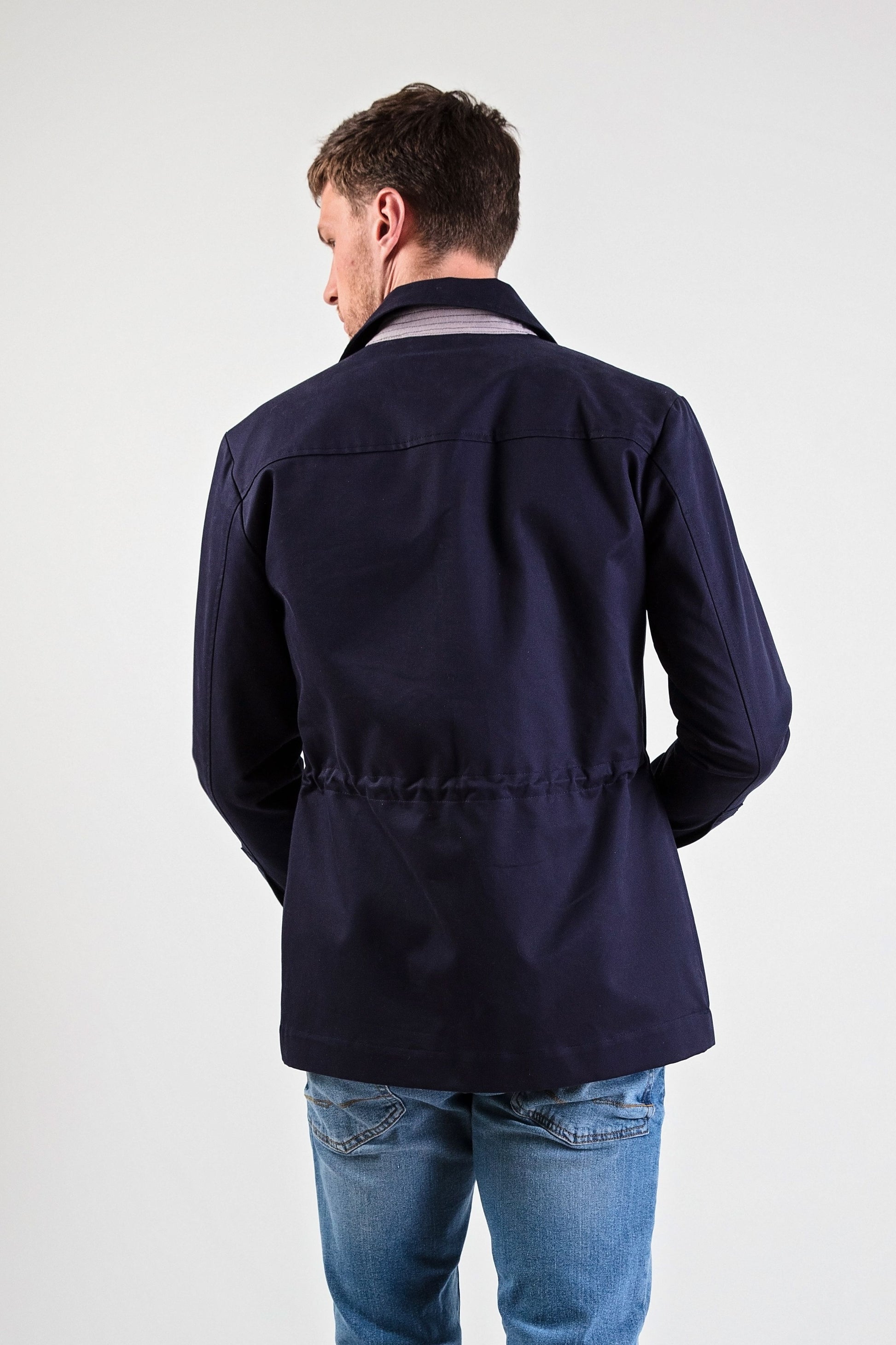 The ultimate throw-on jacket is made from a cotton drill. Stylishly finished inner with pebble contrast grey binding. The internal drawstring waist gives the option for a more tailored fit. Utilitarian pockets. Finished with monogrammed bone buttons.